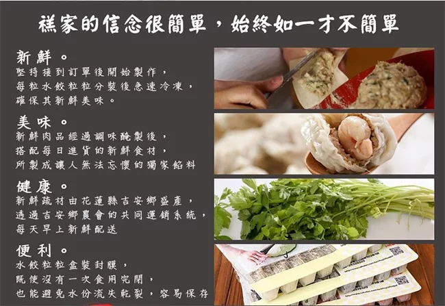 接到訂單後開始製作,每粒水餃要求餡料粒粒飽滿,篩選後粒粒分裝急速冷凍,確保其新鮮美味!