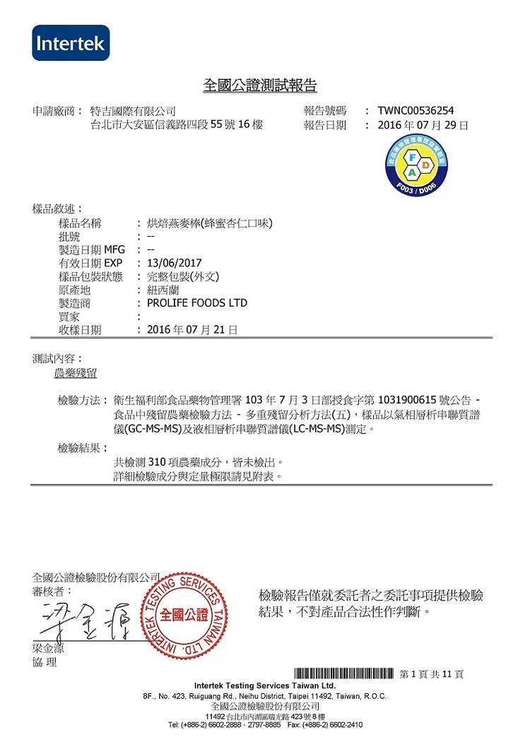 壽滿趣獨家310項農藥、大腸桿菌、防腐劑、黃麴毒素、重金屬均未檢出